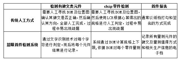 但随着对品质及生产效率的需求进一步提升,我们传统的以人来做首件的方式,因其存在诸多弊端。正在逐步被升级。而升级使用的是蓝眼科技的首件检查系统。因其在品质和效率上的大跨步提升,得到行业内的一致好评。那么我们首先来看一组使用首件检测系统的前后对比: